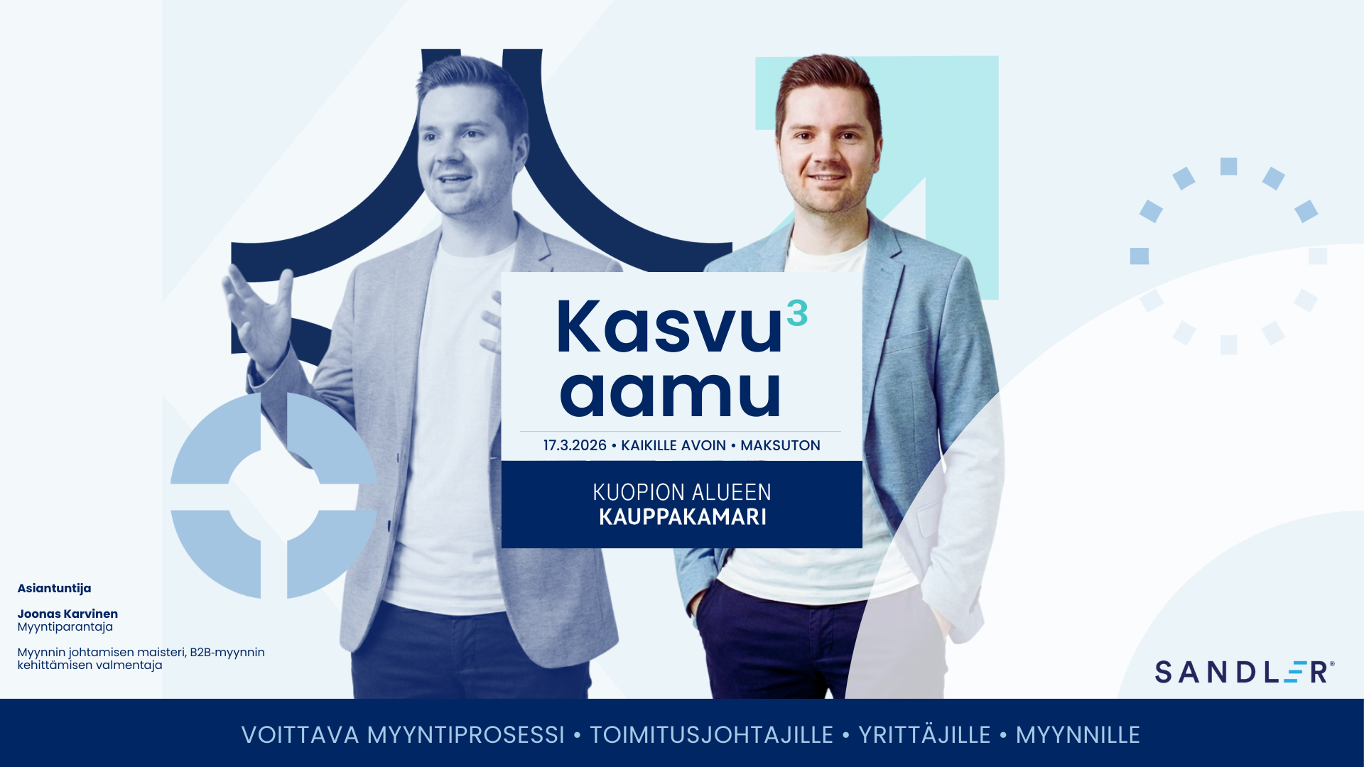 Kuopion alueen kauppakamarin Kasvu³-aamu: Voittava myyntiprosessi on suunnattu sinulle, joka johdat kasvua eturintamassa: toimitusjohtajana, yrittäjänä tai myynnin ammattilaisena.