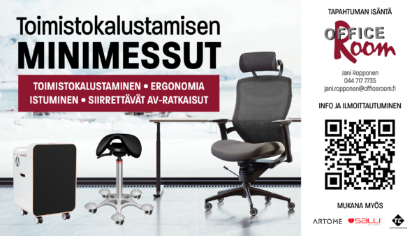 Minimessut – Toimiston kalustaminen, ergonomia, istuminen ja siirrettävät AV-ratkaisut
